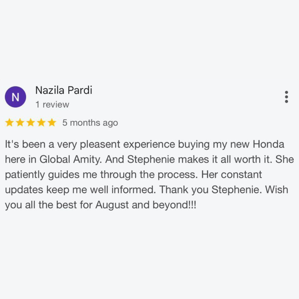 Officially recognised by Honda for outstanding sales performance, professional service excellence, and customer satisfaction.